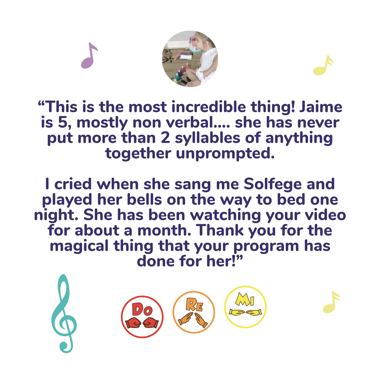 By combining Solfège (Do Re Mi) with easy to remember hand-signs, kids connect the abstract sounds of the musical notes to concrete & memorable motions.